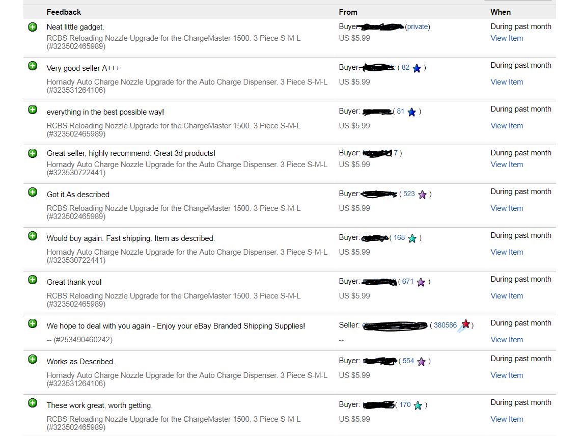 Nozzle Feedback is coming in!  Thank you to all who leave me feedback on eBay